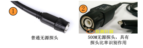圖3的無源探頭可用于大部分示波器的信號輸入,圖4的探頭因為在結(jié)構(gòu)上設(shè)計獨特,且其需要供電,所以僅適用于與其兼容的示波器輸入。