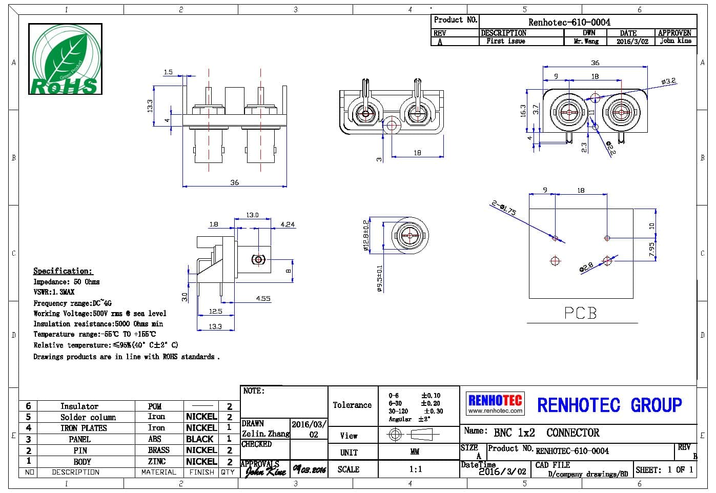 | 頻率范圍 | 50 ohm 為 0~4 GHz |
