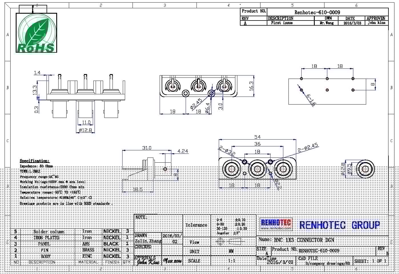 中心接觸電阻 ≦ 1.5 mΩ (Milliohms max.)