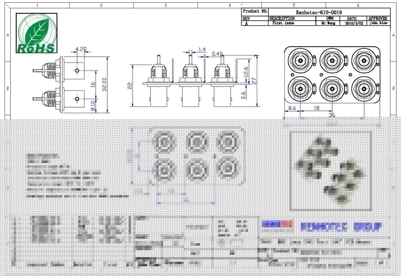 pcb 插座6同軸射頻直式母頭 BNC連接器