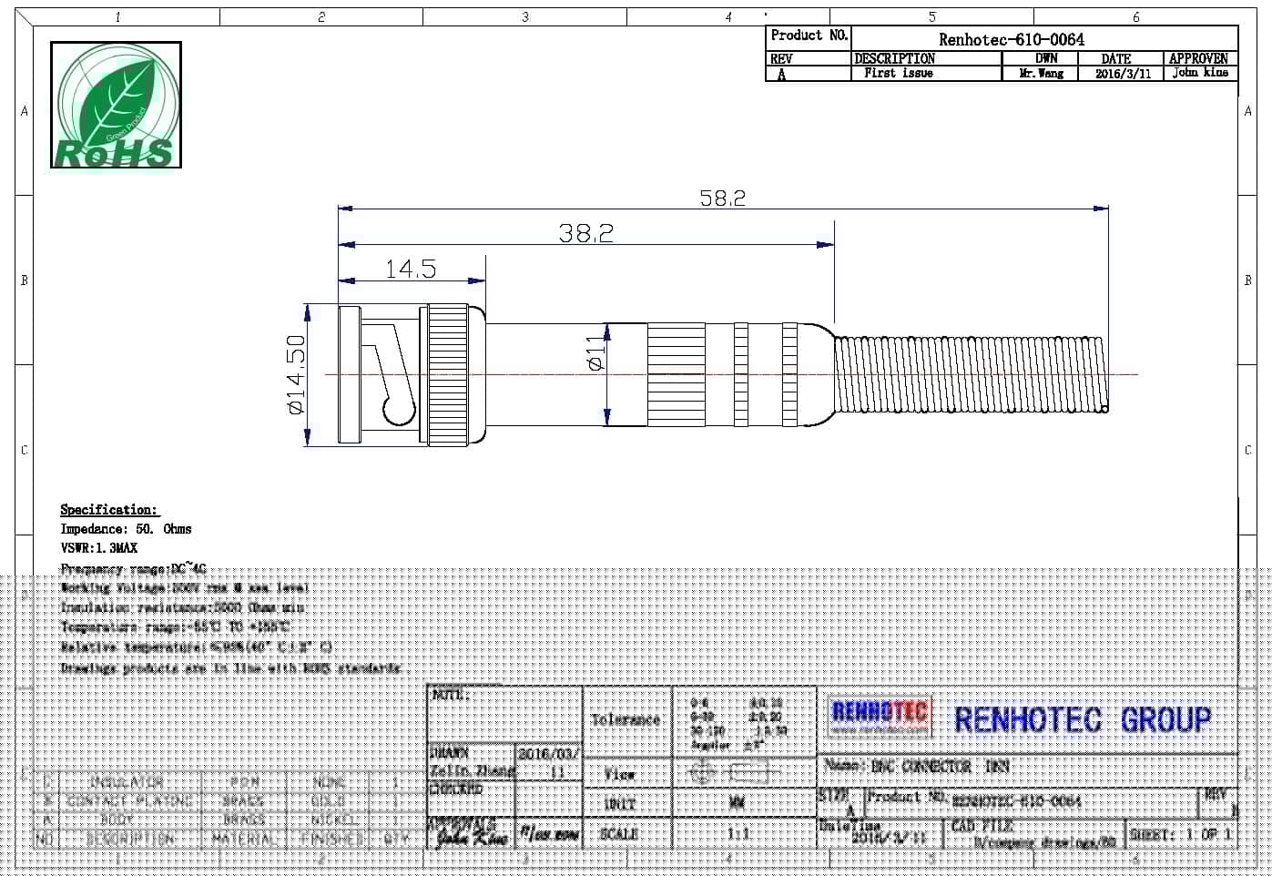 | 電壓駐波比 | 直式 ≦ 1.22/3GHz / 彎式≦ 1.30/3GHz |
