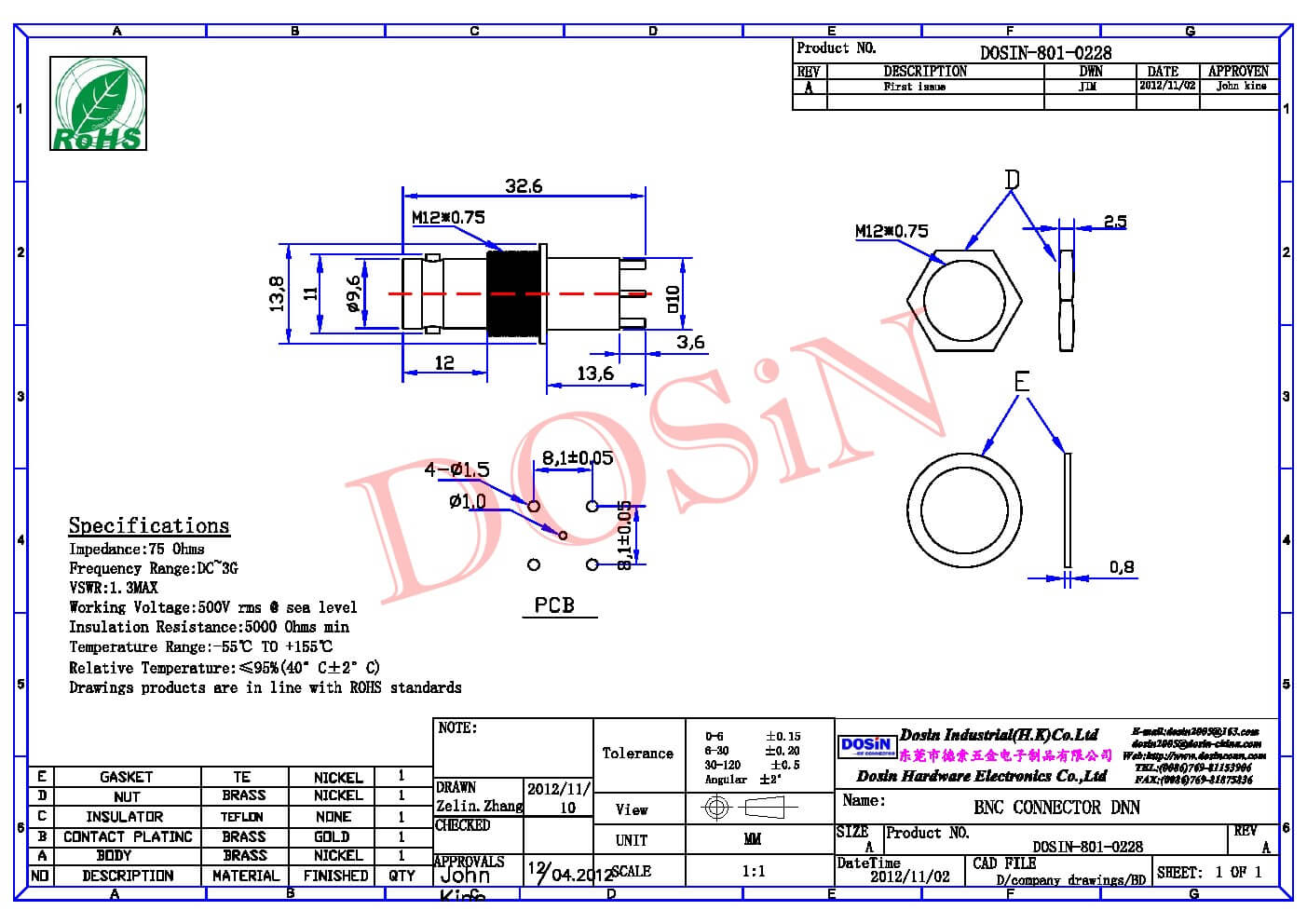 | 電壓駐波比 | 直式 ≦ 1.22/3GHz / 彎式≦ 1.30/3GHz |
