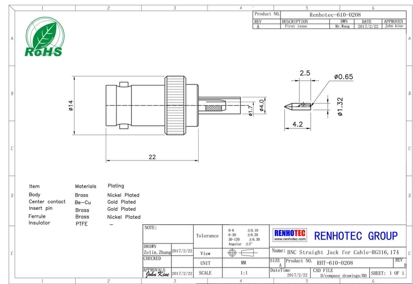 | 電壓駐波比 | 直式 ≦ 1.22/3GHz / 彎式≦ 1.30/3GHz |