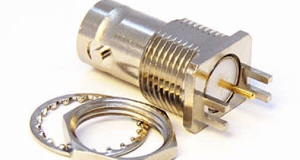 直式75歐姆BNC接頭PCB板母頭前鎖穿墻卡板1.6mm鍍鎳