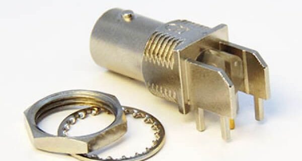 BNC彎接頭連接器母頭接PCB板穿墻插板式厚度6.8mm鍍鎳