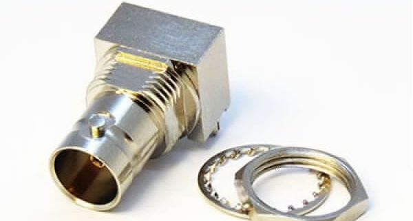 板端BNC接頭90度彎式母頭射頻同軸連接器插孔75歐姆鍍鎳